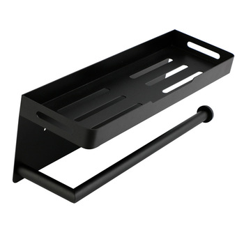 Portarrollos de papel de baño de acero inoxidable montado en la pared negro clásico moderno y soporte para teléfono móvil con diseño elegante