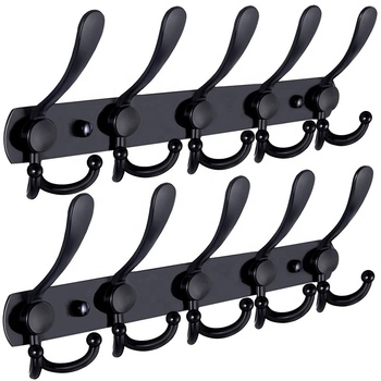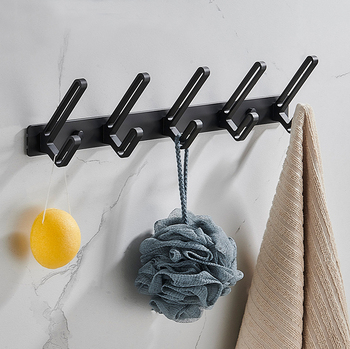 Percha de pared ecológica de 5 ganchos de aluminio negro para uso en el baño No requiere perforación